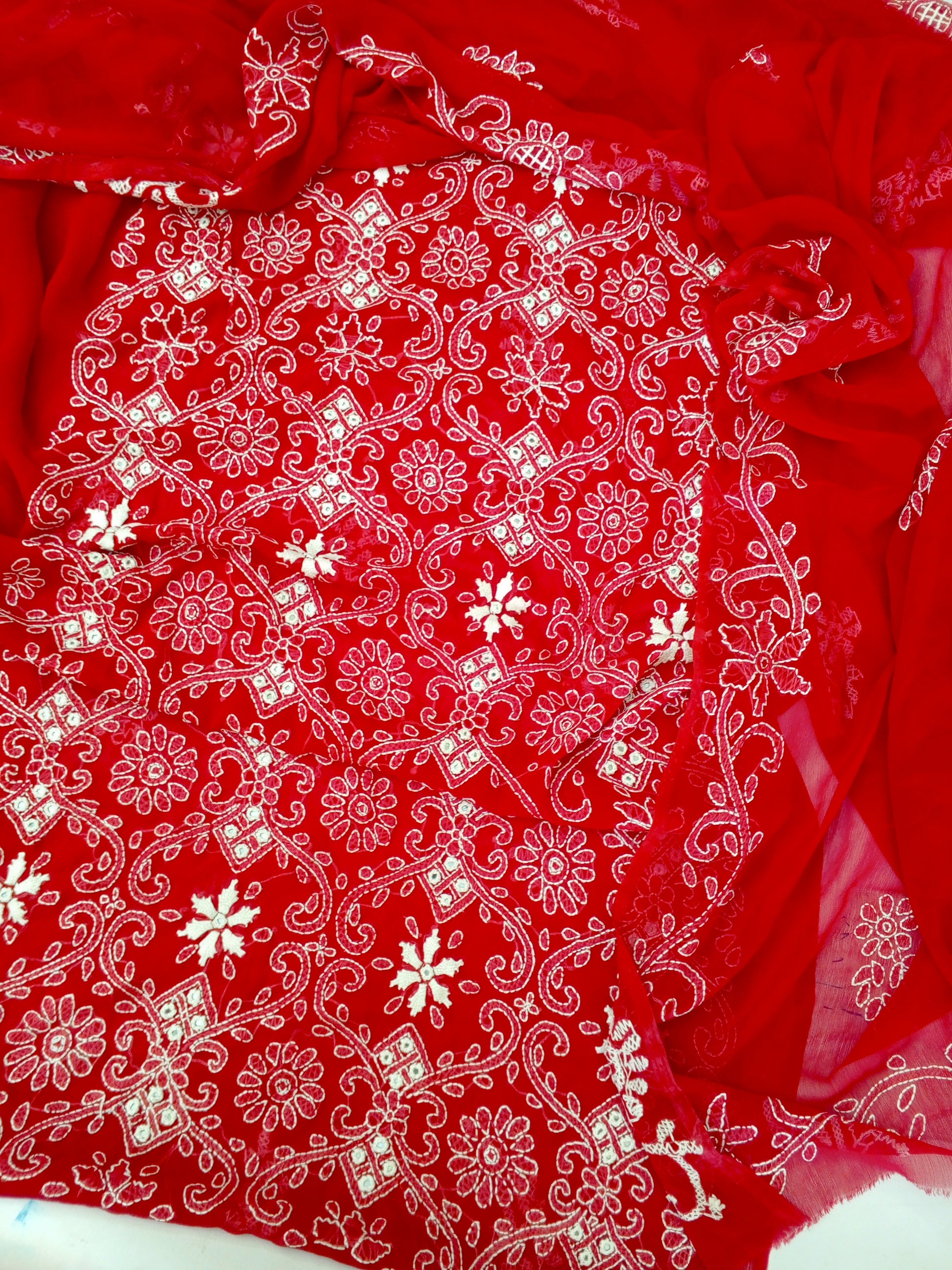 Chikenkari Mirror work chiffon shirt dupptta - Ref