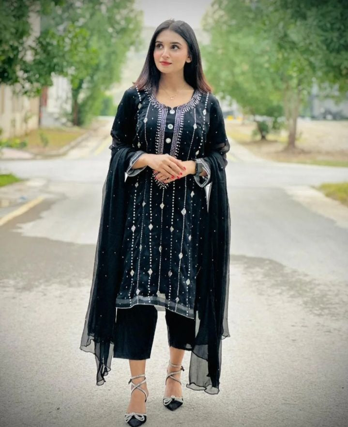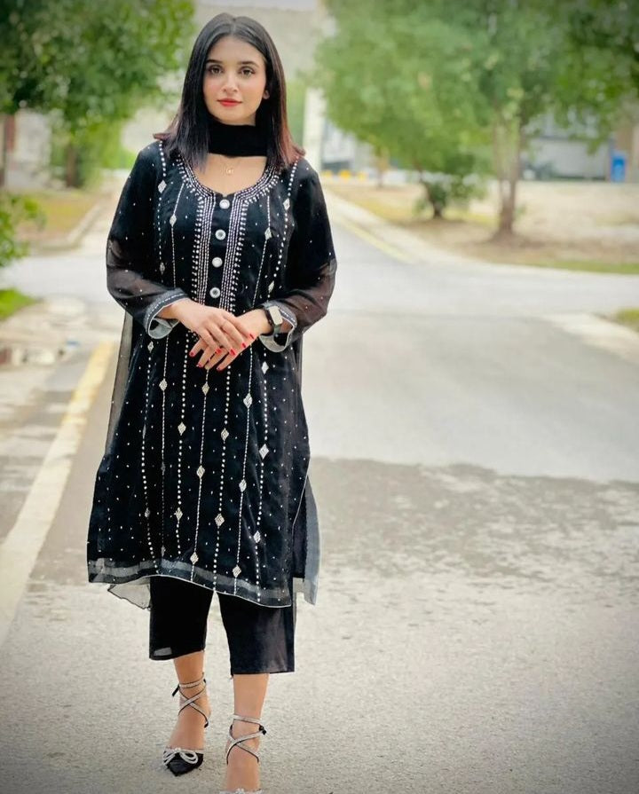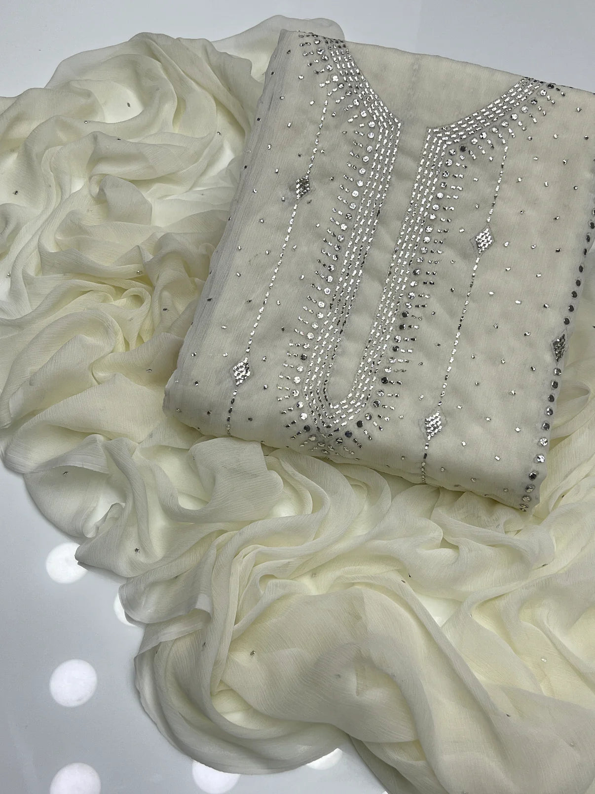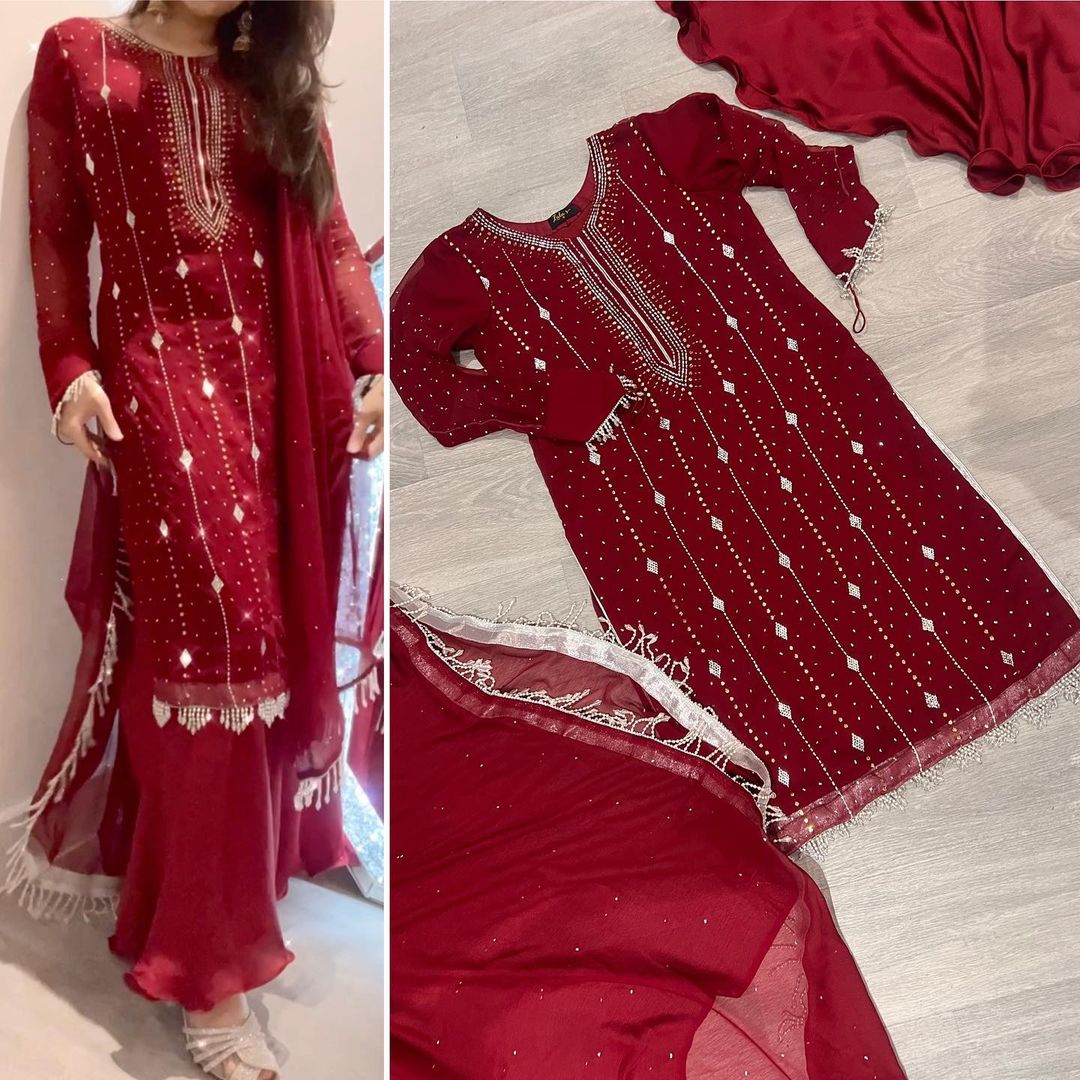 - Fancy Exclusive Classic Chiffon Mukesh Work