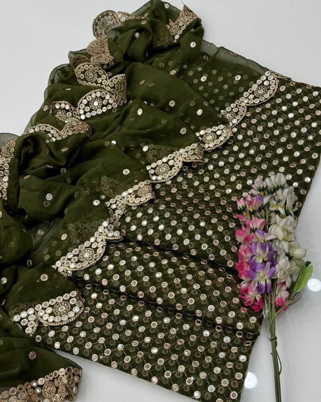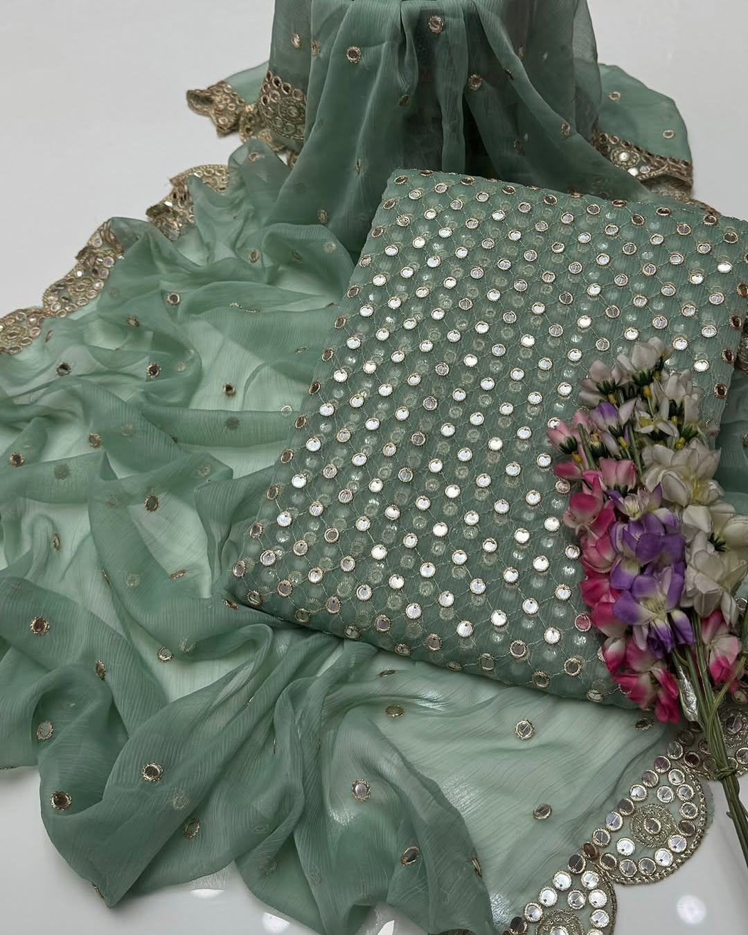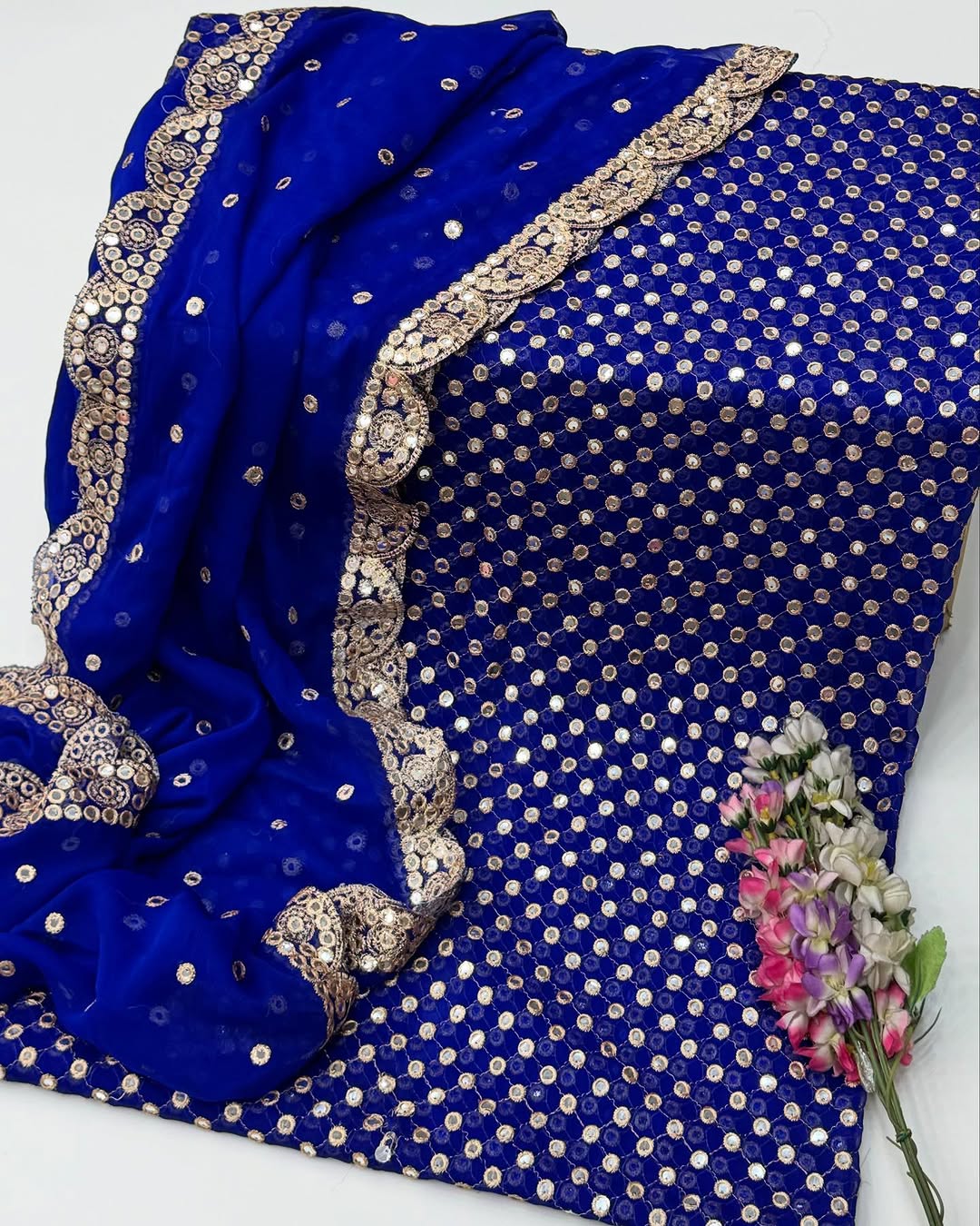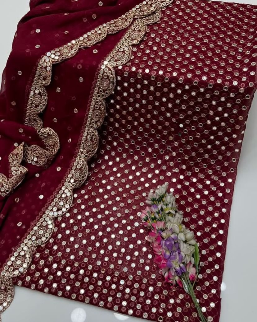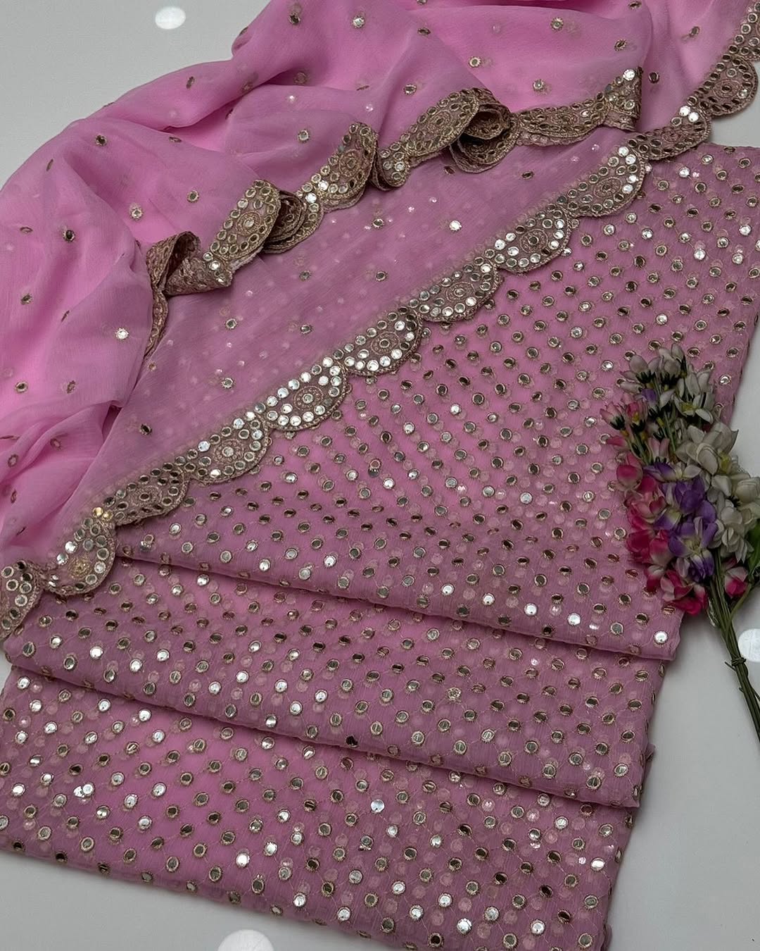 Heavy Sheesha Plastic Paani Work Zaari Embroidery Soft Chiffion Shirt Along With Heavy Sheesha Paani Work Chiffion Duppata 2 PC Dress
