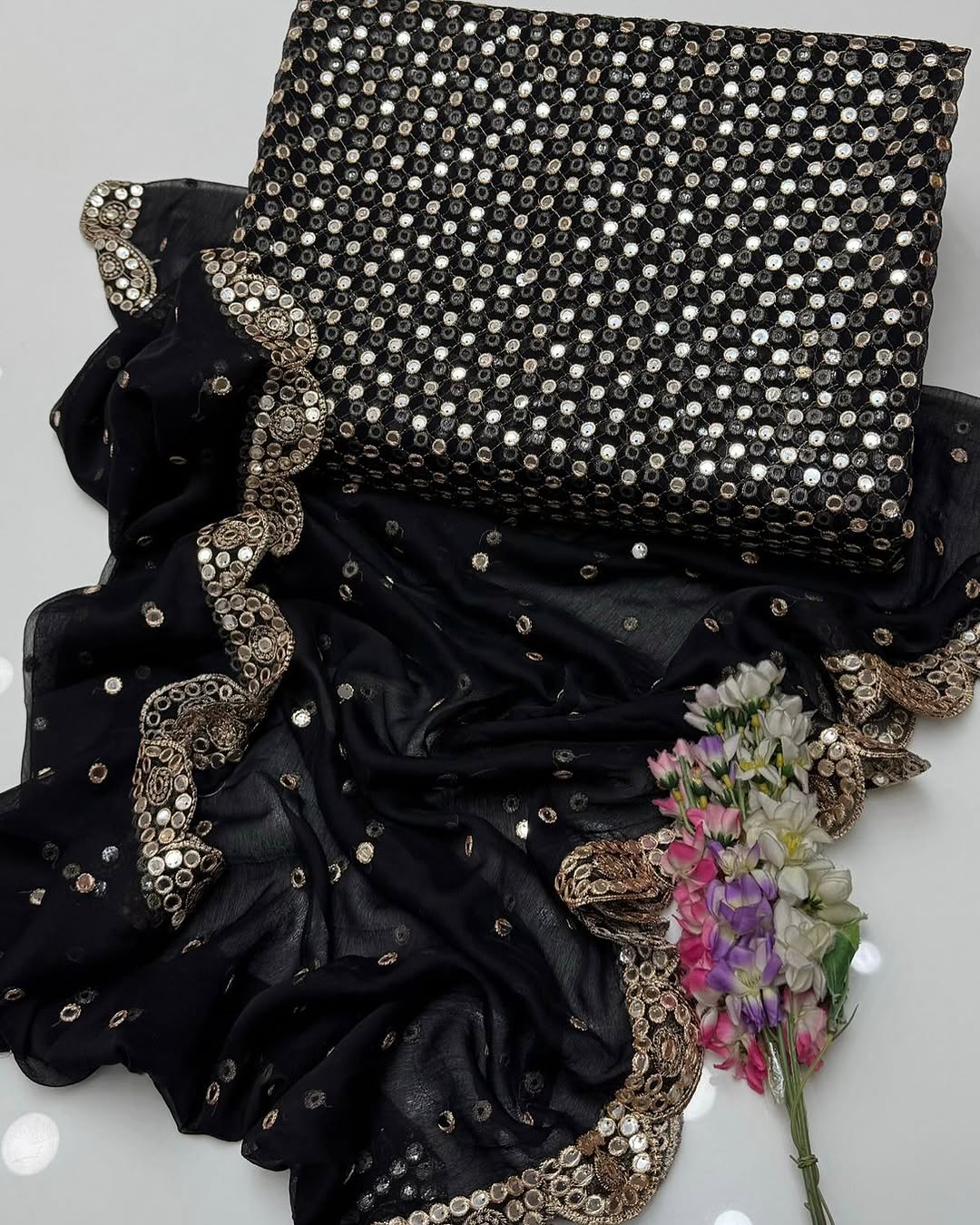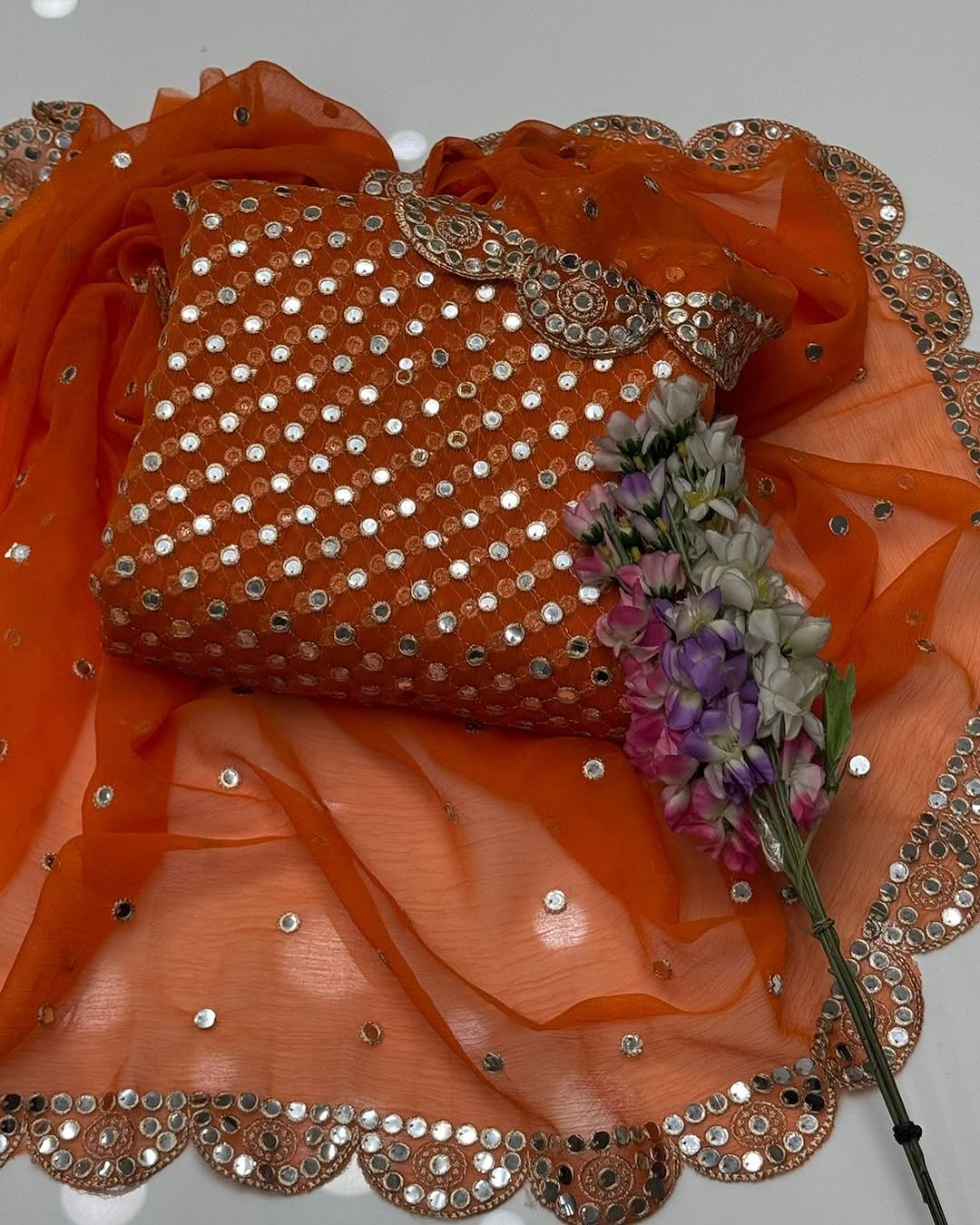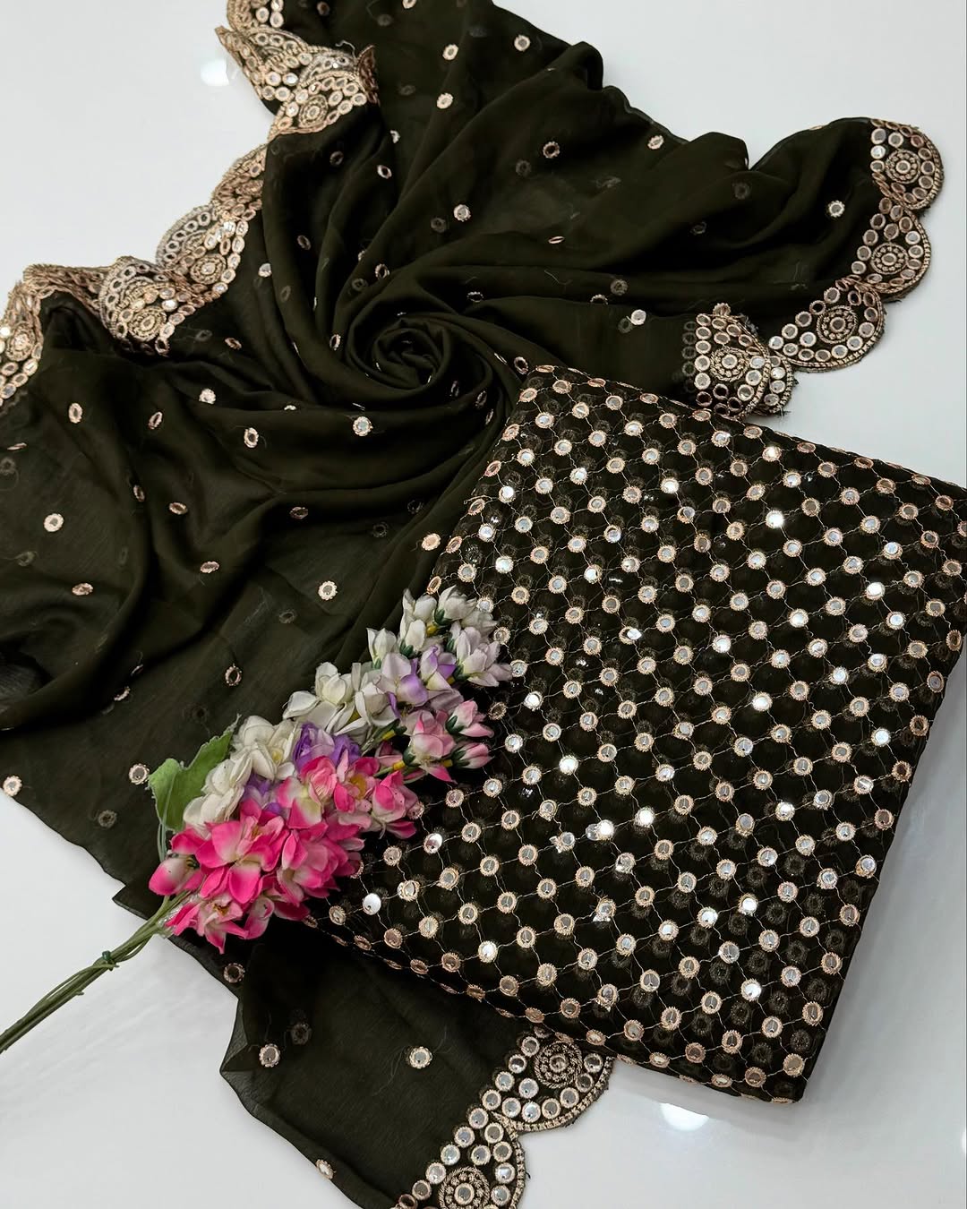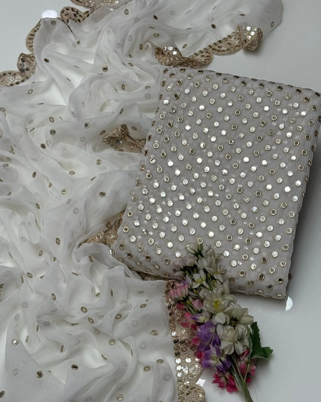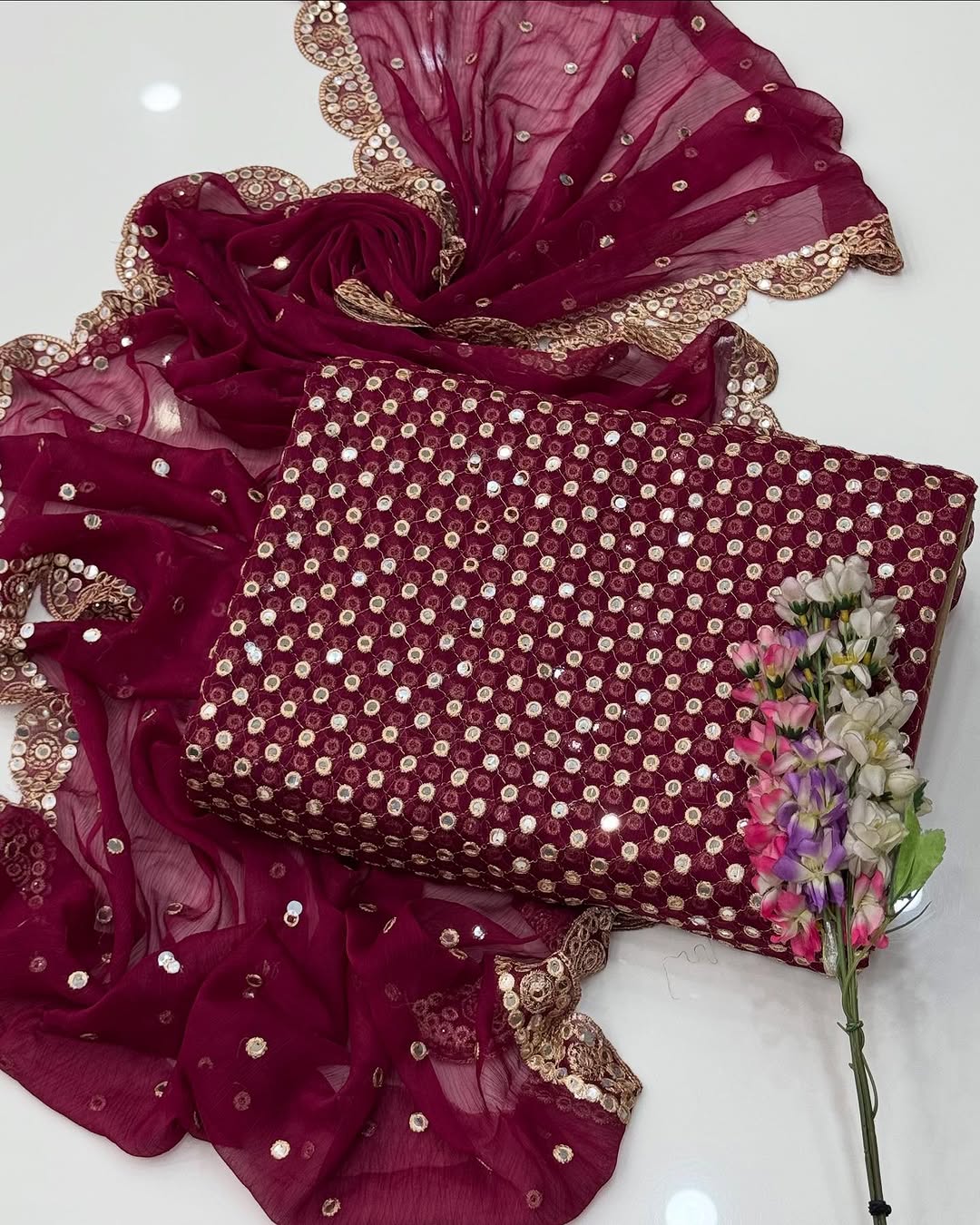 Heavy Sheesha Plastic Paani Work Zaari Embroidery Soft Chiffion Shirt Along With Heavy Sheesha Paani Work Chiffion Duppata 2 PC Dress