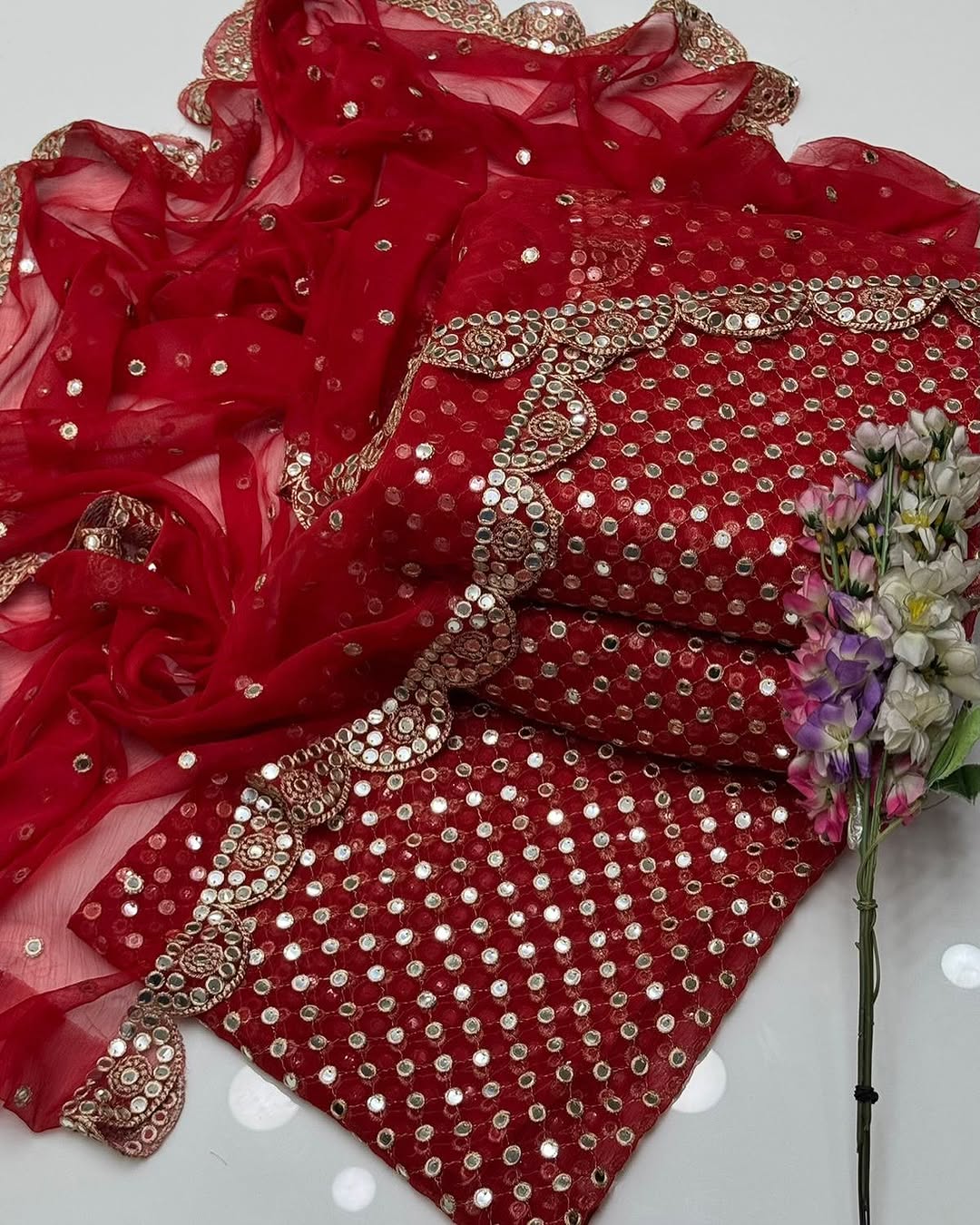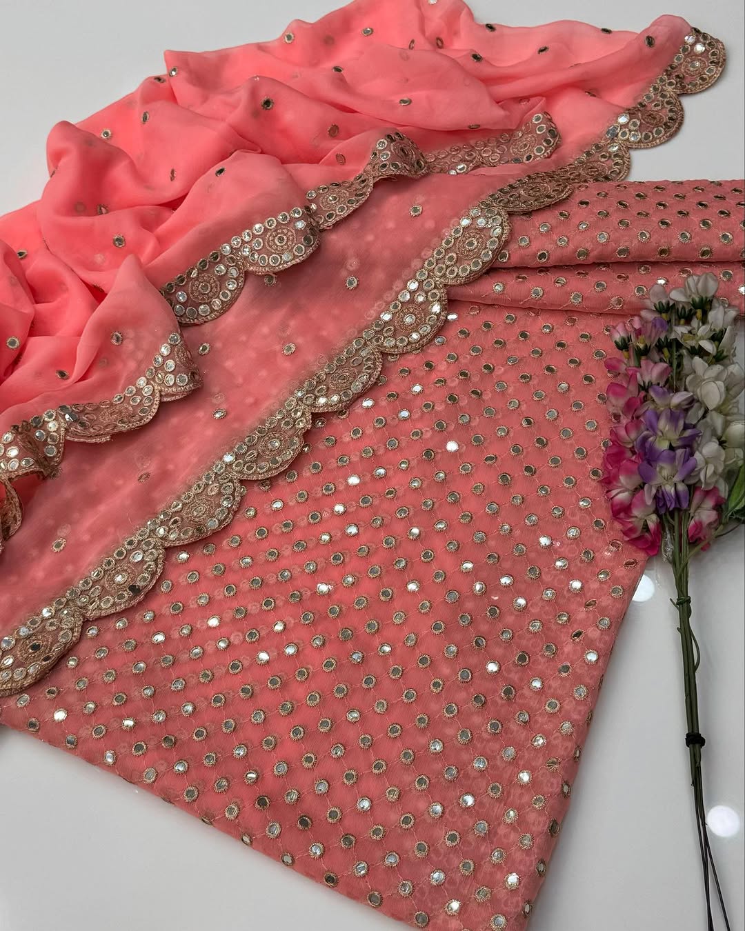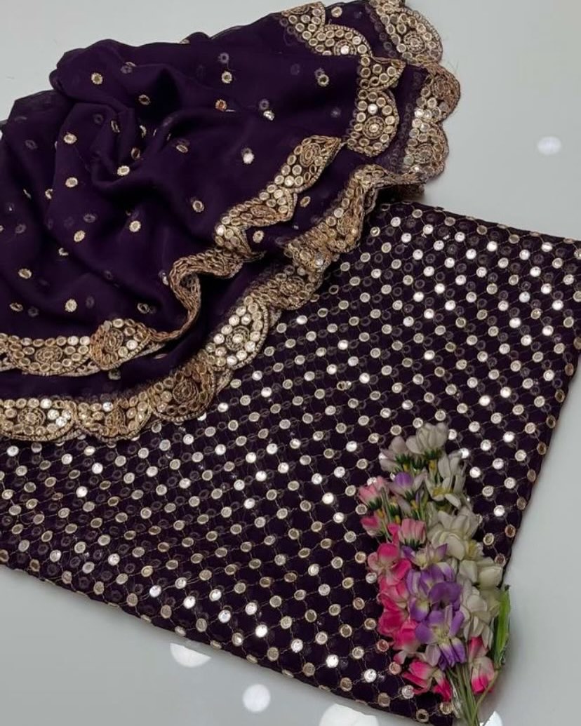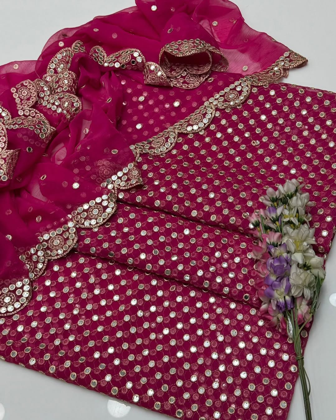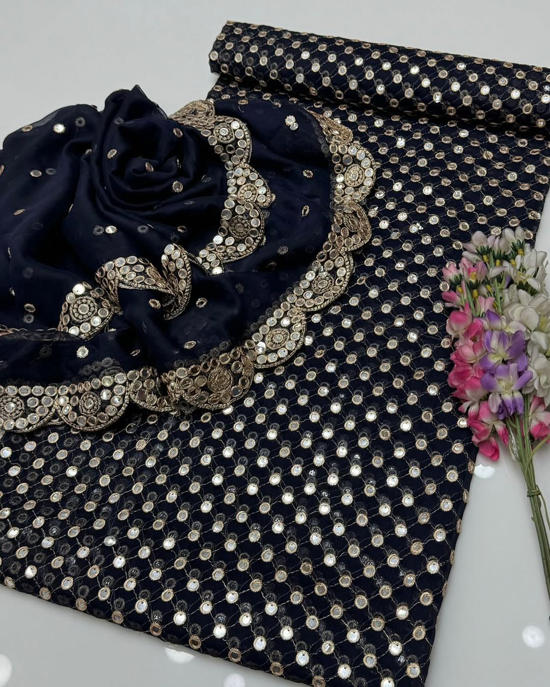 Heavy Sheesha Plastic Paani Work Zaari Embroidery Soft Chiffion Shirt Along With Heavy Sheesha Paani Work Chiffion Duppata 2 PC Dress