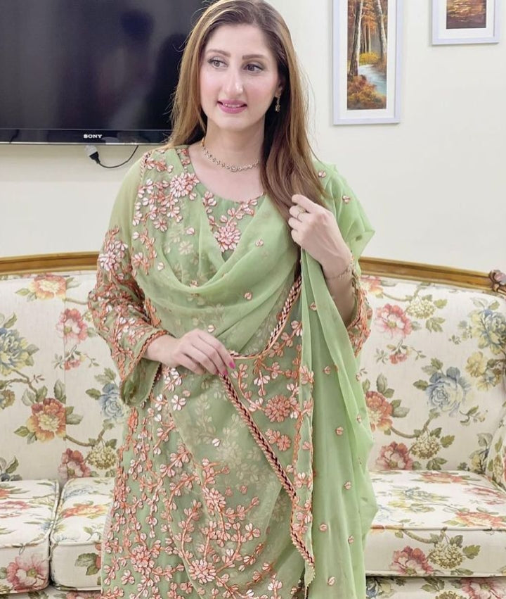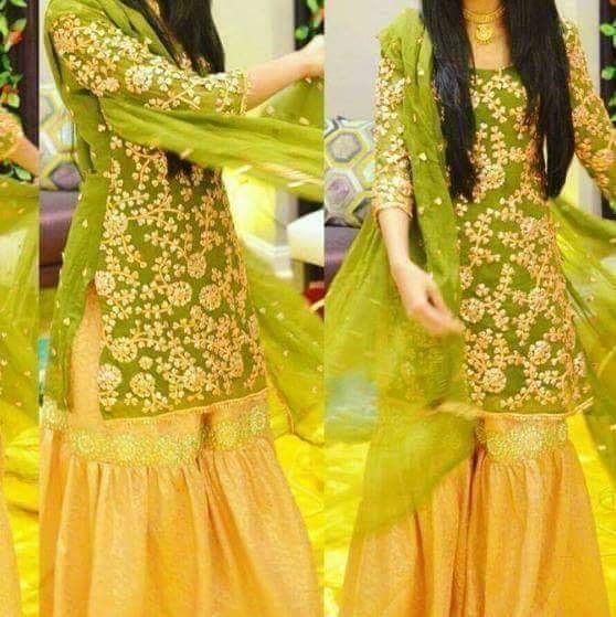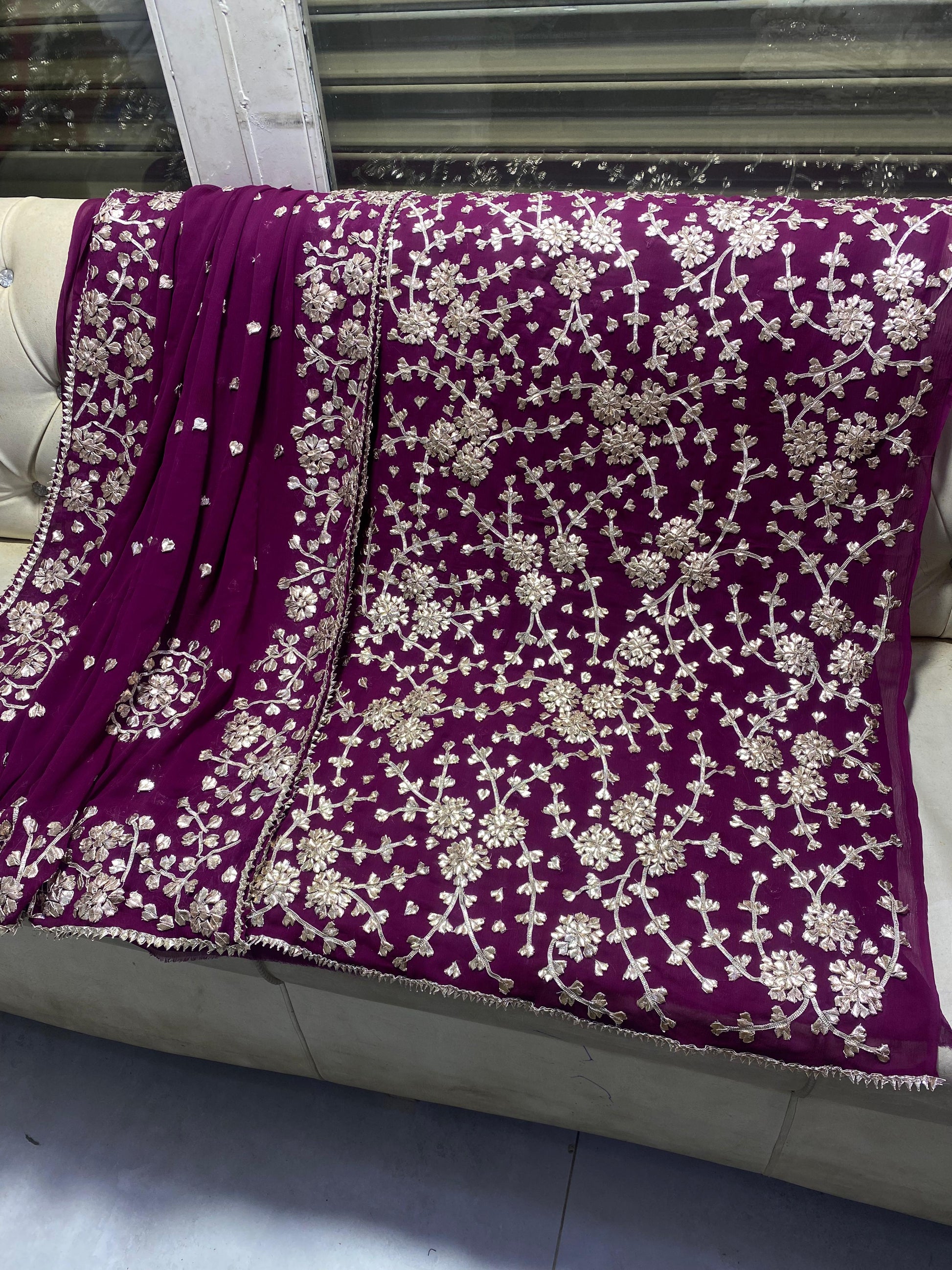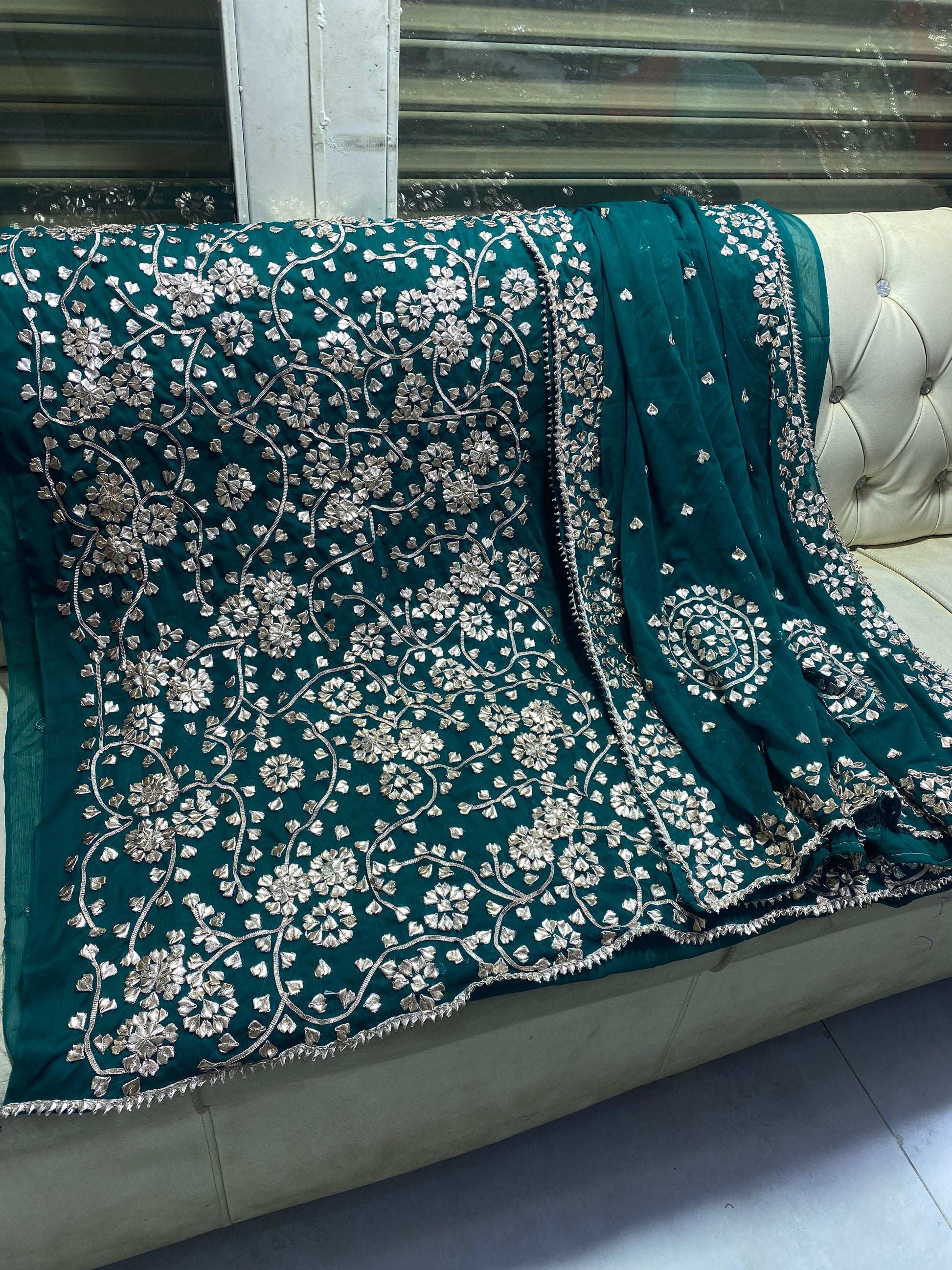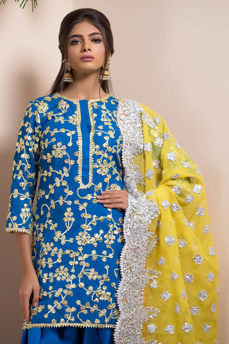 LCD Gotta Work Handmade Full Embroidered Shirt with 4 Sided Border Dupatta Heavy 2Pcs Dress